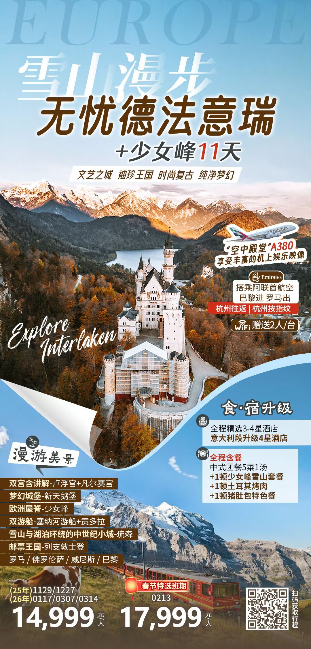 📣性价比之王🫅雪山漫步🏔 德法意瑞+少女峰11天