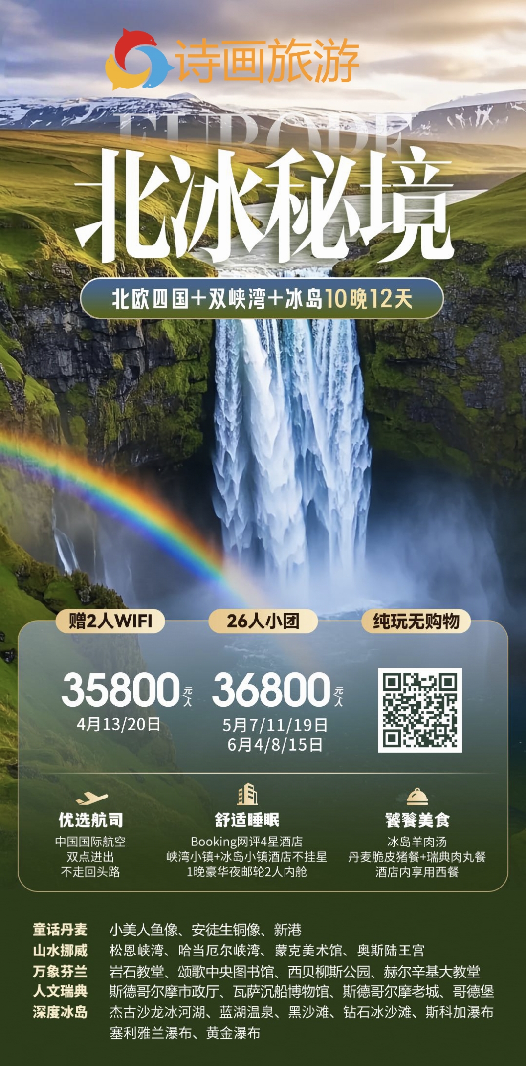 特惠北冰·北欧四国+双峡湾+冰岛10晚12天