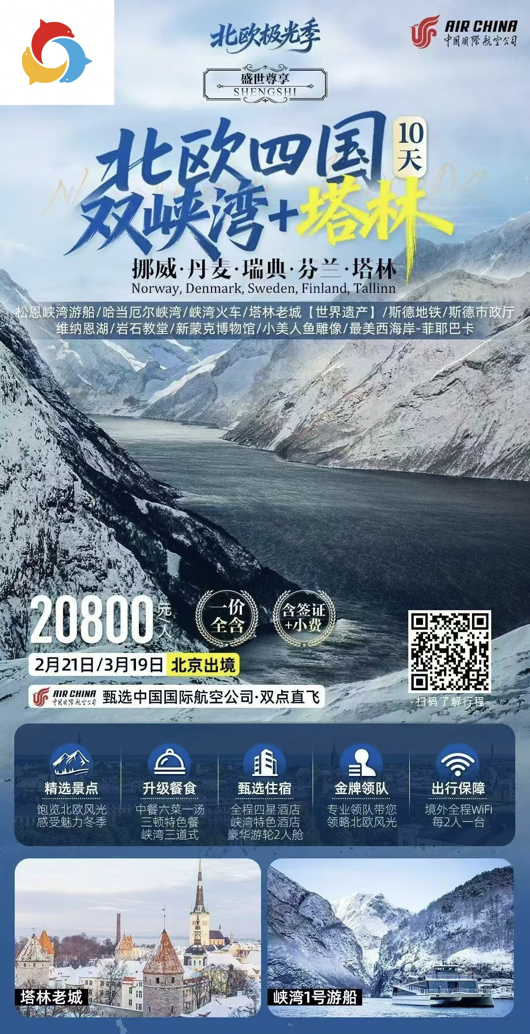 【盛世尊享】CA-10天(斯进哥出)北欧四国双峡湾+塔林