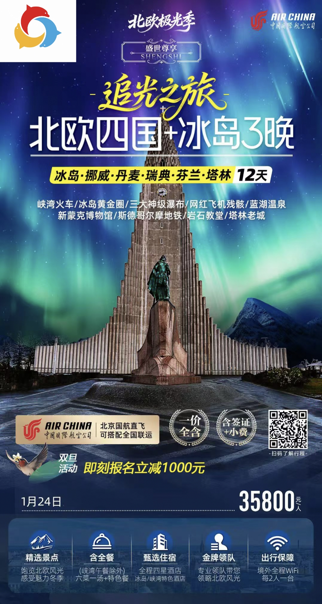 【盛世尊享】CA-12天B线-北欧四国双峡湾+塔林+冰岛三晚+追光之旅(哥进斯出,奥进赫出冰岛段)(1013改)
