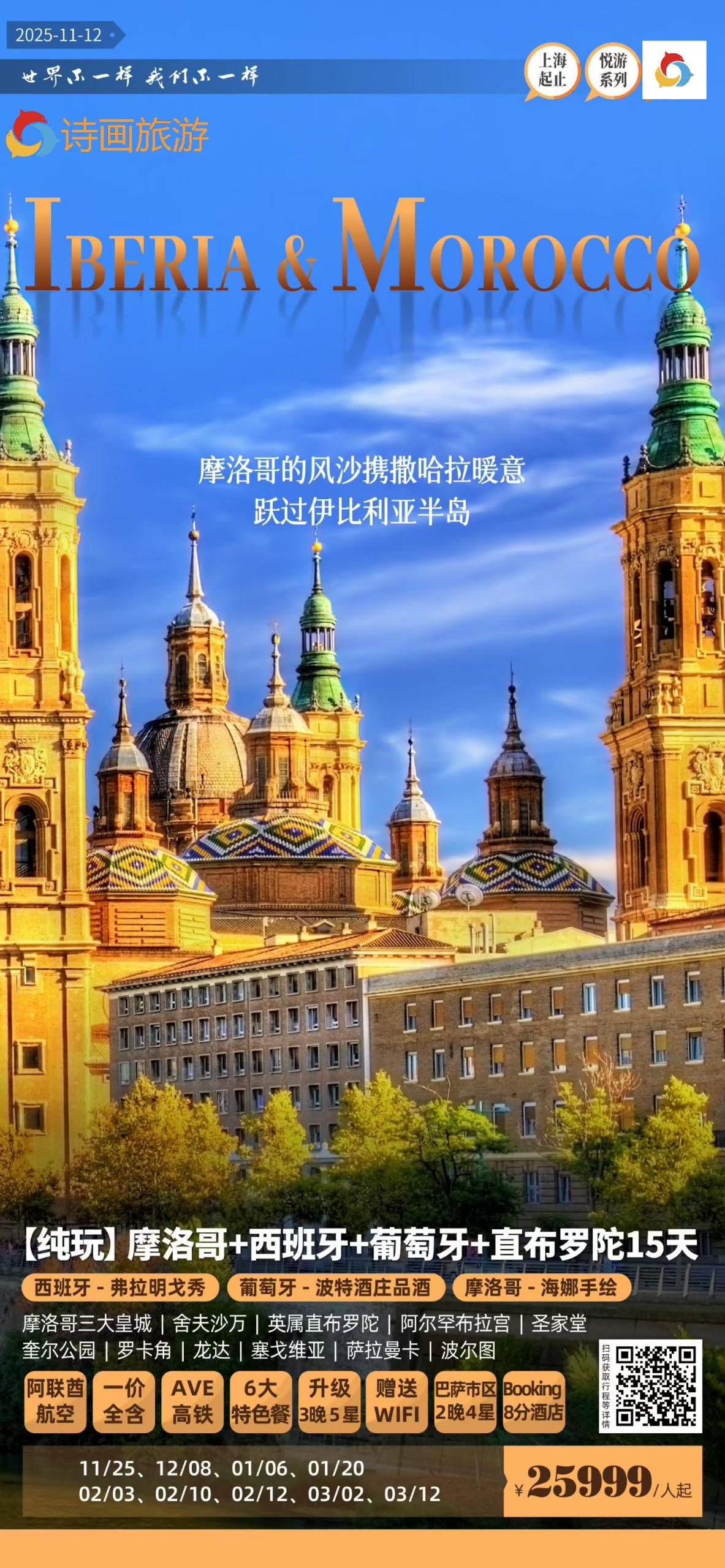 【欧洲】西葡+摩洛哥+直布罗陀15天 (一价全含)❗