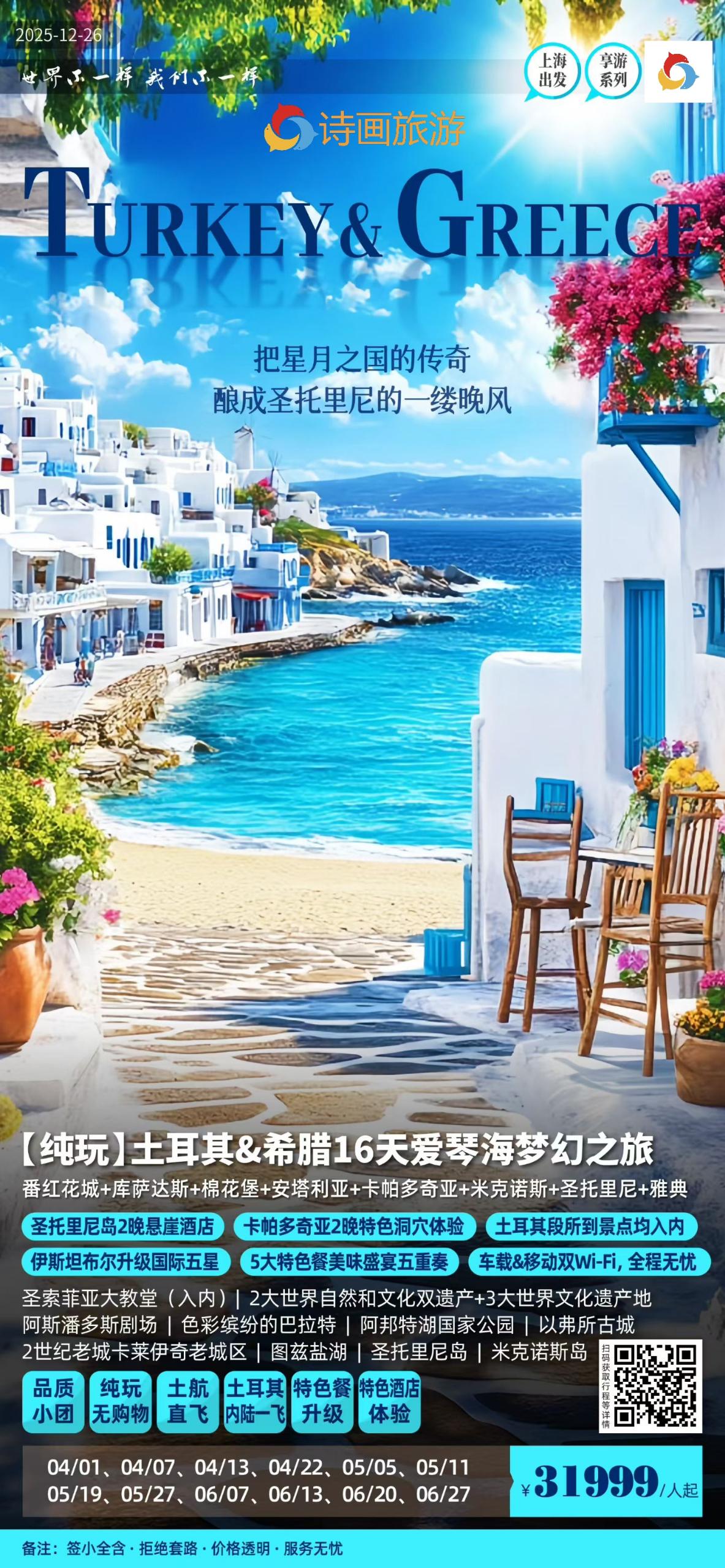 26年土耳其、希腊16天第一波 📷稀缺联线行程,保证每站人气旅游城市入住,超越走马观花