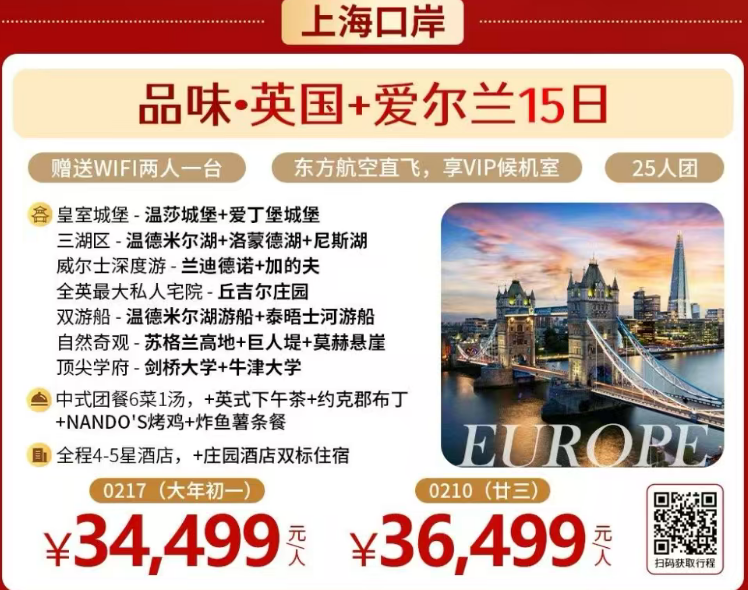 品味·英国+爱尔兰15日赠送WIFI两人一台