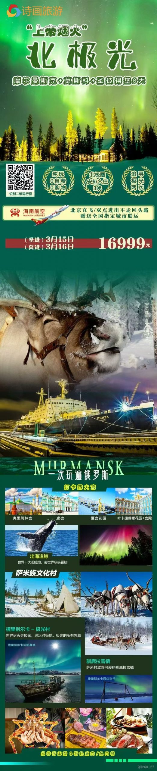 🌌【北极光 + 俄式双城,8 天纯玩之旅带你奔赴 “欧若拉之约”!】