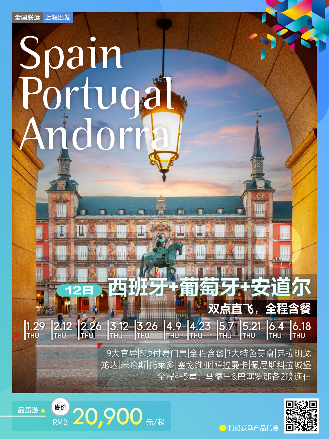 2. 品质游 西班牙+葡萄牙12日 【部分升级安道尔】