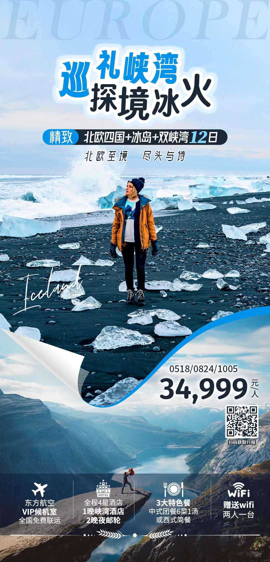 【精致北欧四国+冰岛+双峡湾12日|巡礼峡湾,探境冰火】 MU+FI 哥本哈根进出,不走回头路 🇫🇮芬兰:赫尔辛基+岩石教堂 🇳🇴挪威:奥斯陆+双峡湾巡礼 🇩🇰丹麦:哥本哈根+小美人鱼铜像 🇸🇪瑞典:斯德哥尔摩+市政厅/地铁站+延雪平+马尔默 🇮🇸冰岛:雷克雅未克+黄金圈+蓝湖温泉+杰古沙龙湖惊艳的美景