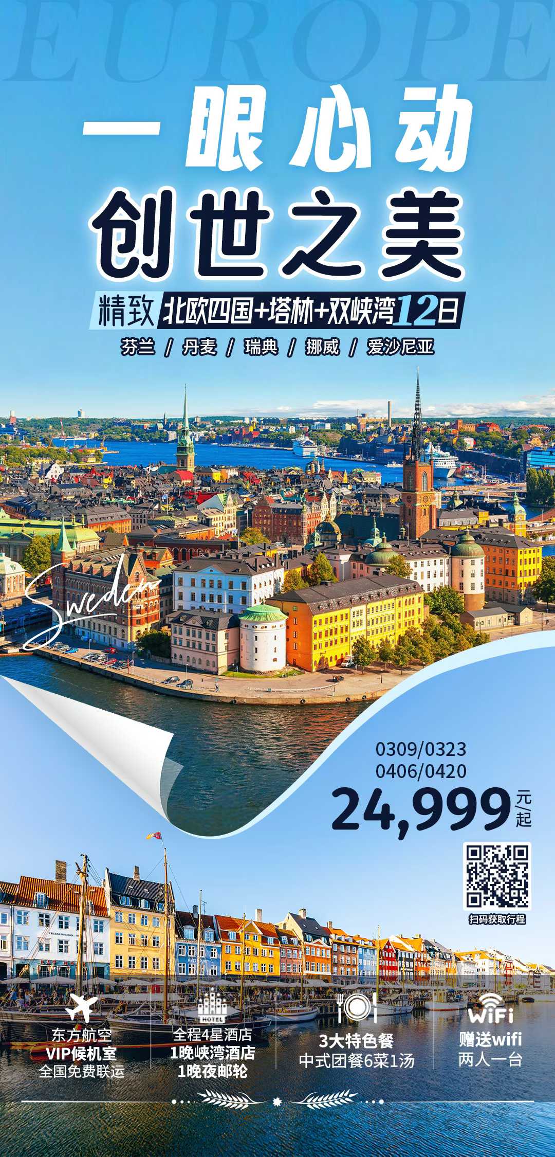 2. 精致北欧四国+塔林+双峡湾12日|一眼心动, 创世之美】 东方航空往返直飞,让旅途从出发开始便优雅从容