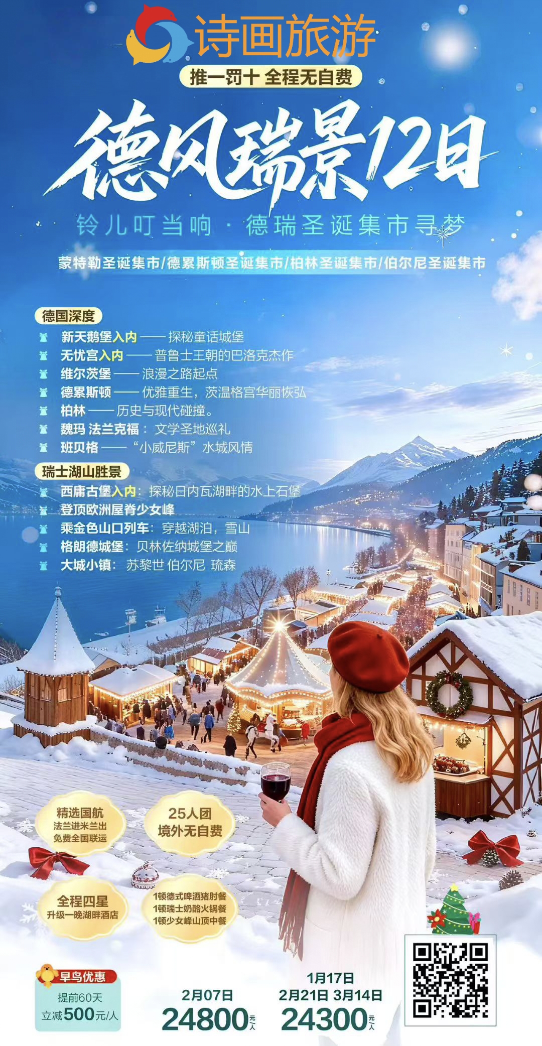 🌐浪漫德意志·德国一地13日 🤎双点进出,国航直飞,免费全国联运