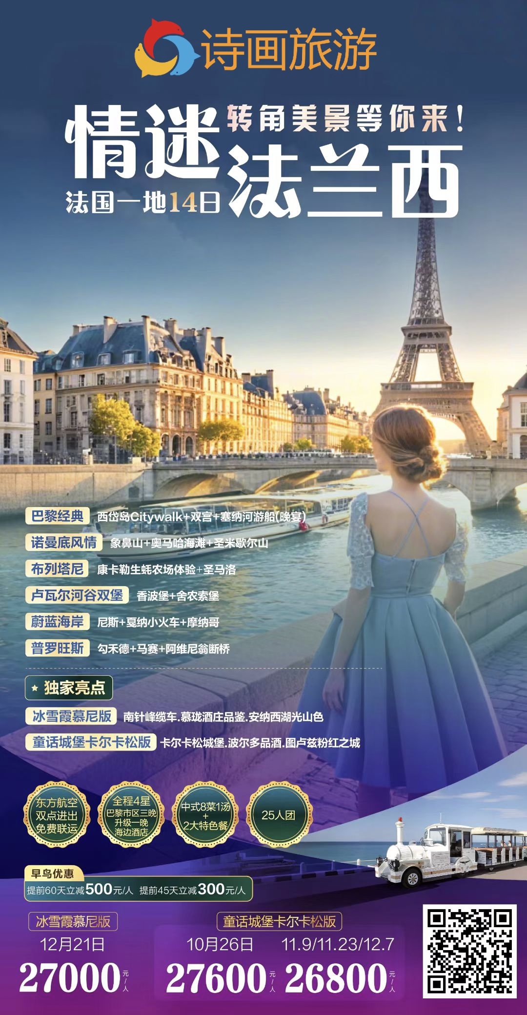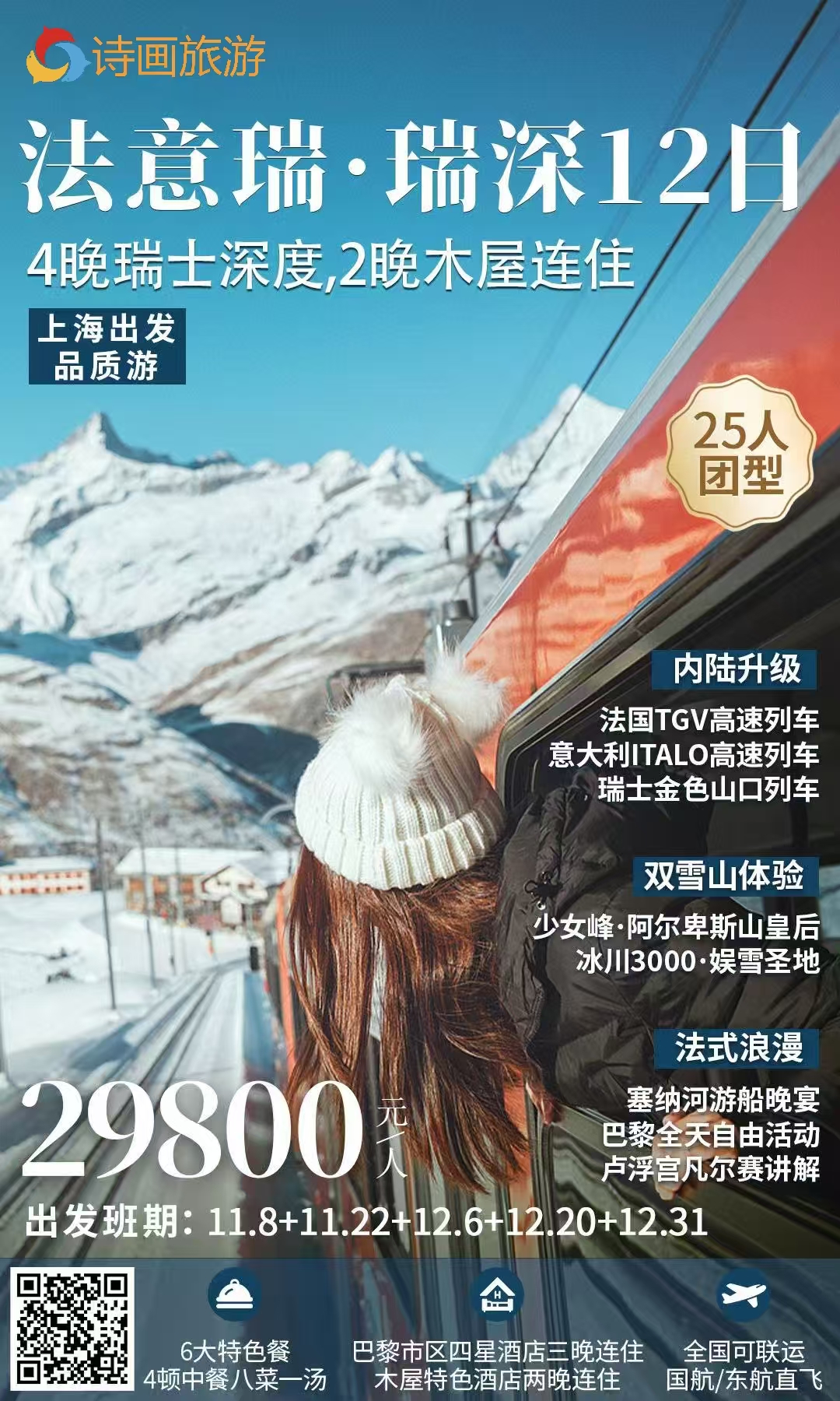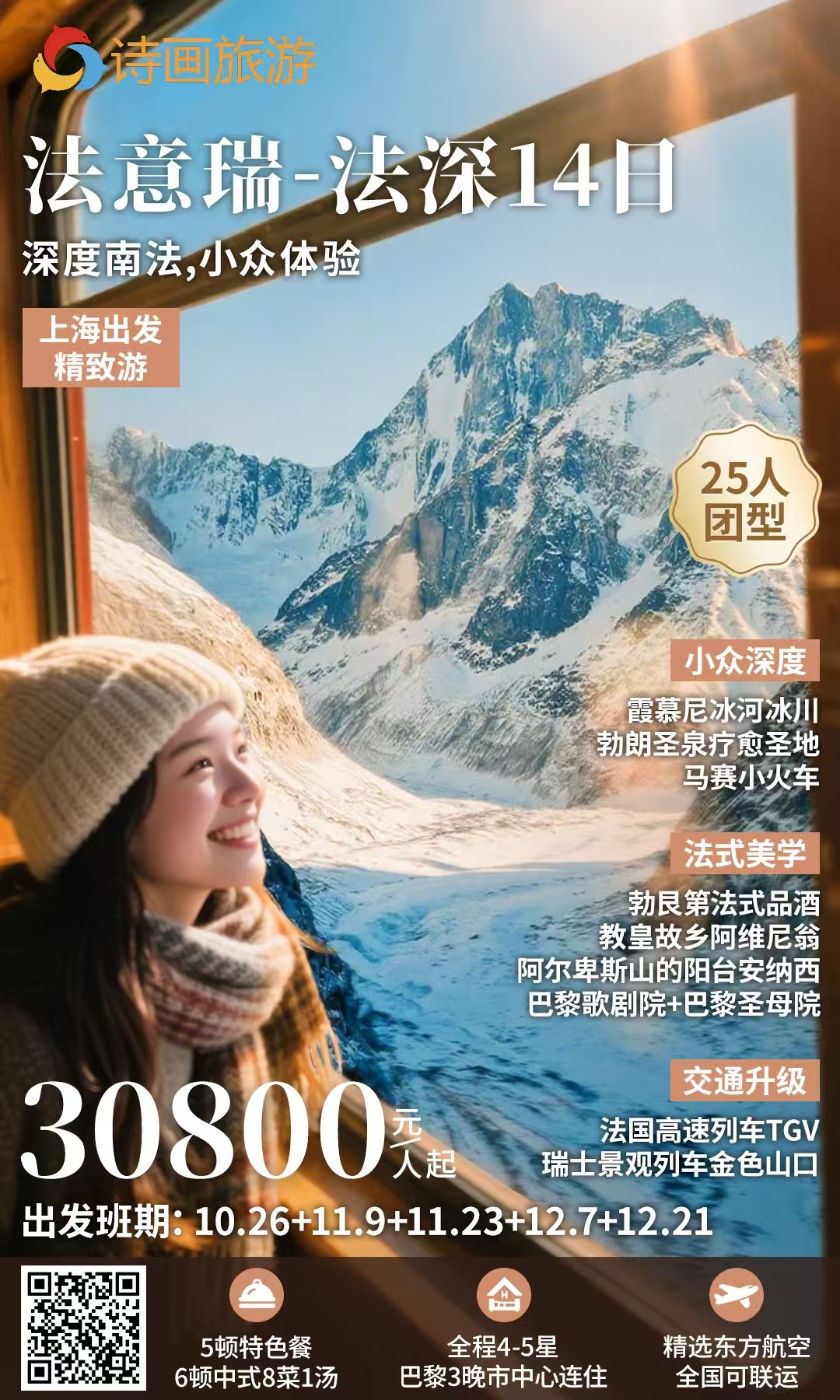 💫法瑞意德浪漫之路12天9晚轻奢之旅