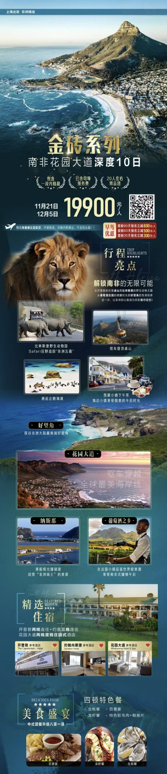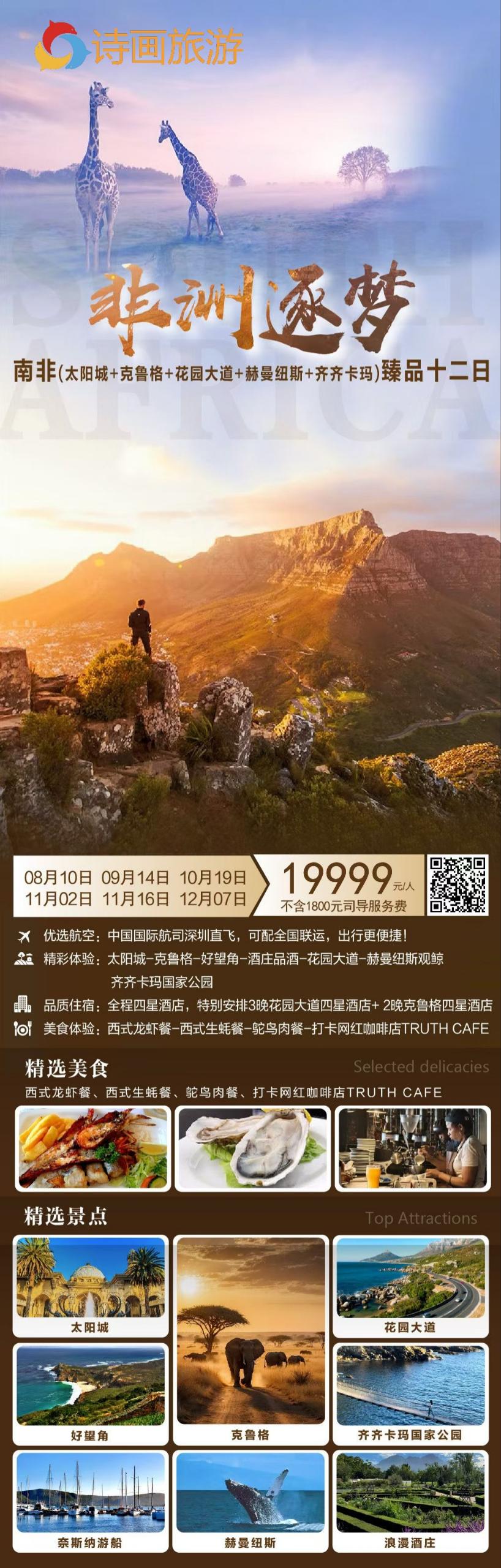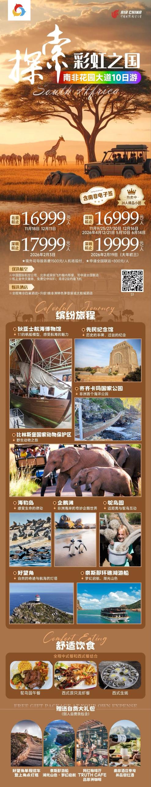 南非一地12天9晚(上海ET) 出发日期:2月17日(年初一) 机位:17+1个位置