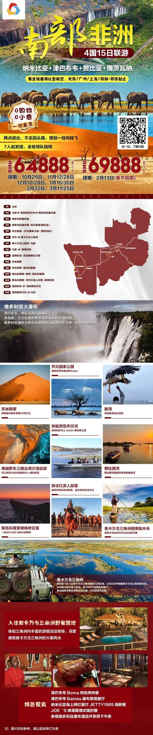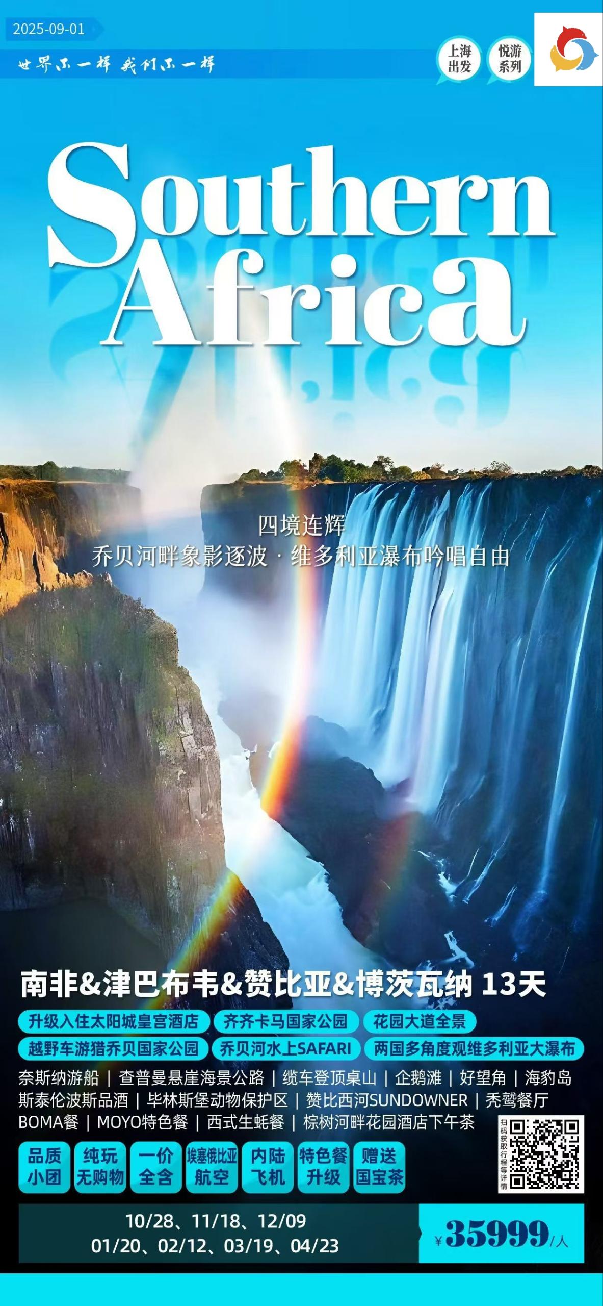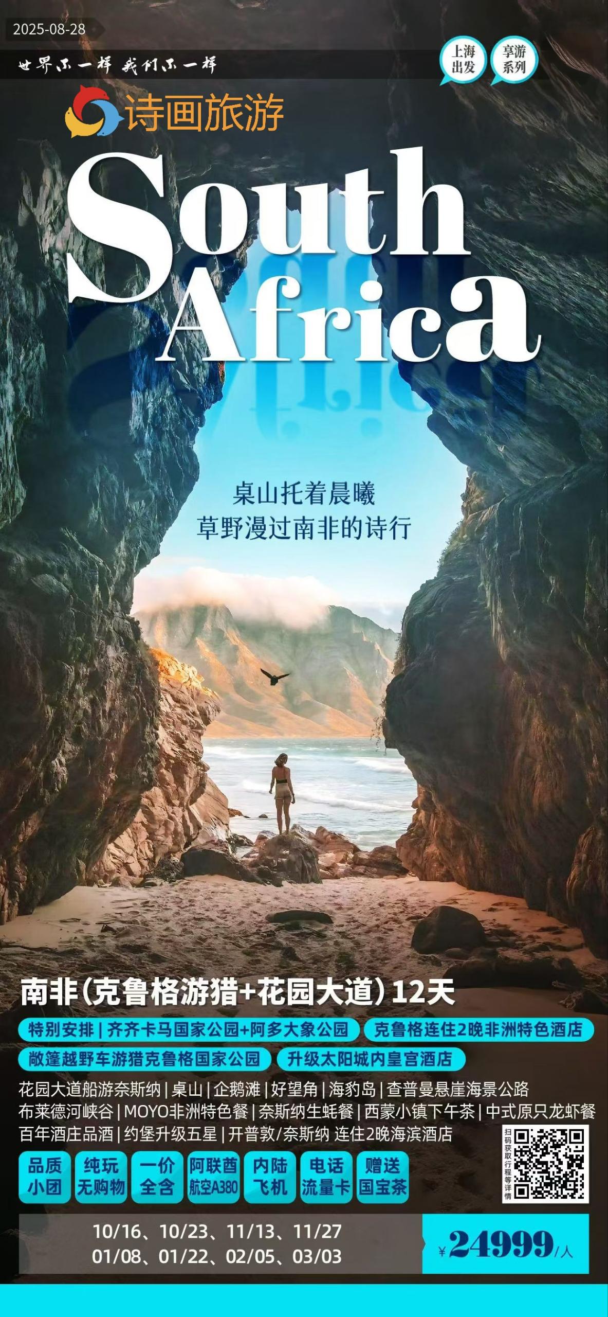 南非一地12天9晚(上海ET) 出发日期:2月17日(年初一) 机位:17+1个位置